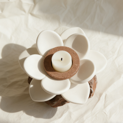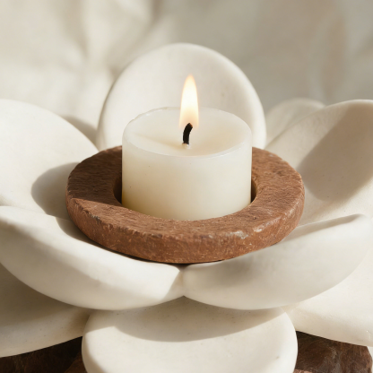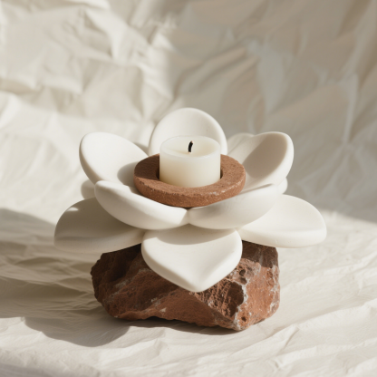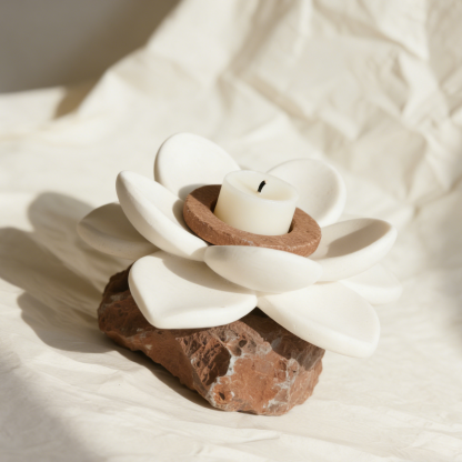 Bougeoir en forme de fleur de lotus en pierre sculptée